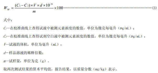 AFS法將標(biāo)準(zhǔn)物質(zhì)或校準(zhǔn)溶液作為質(zhì)控樣品,每10個(gè)樣品測試一次,計(jì)算測量的準(zhǔn)確度。如若需要,應(yīng)重新繪制校準(zhǔn)曲線。