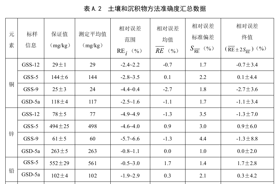 本標準適用于土壤和沉積物中銅、鋅、鉛、鎳和鉻的測定。當取樣量為0.2g、消解后定容體積為25 ml時,銅、鋅、鉛、鎳和鉻的方法檢出限分別為1 mg/kg、1 mg/kg、10 mg/kg、3 mg/kg和4 mg/kg,測定下限分別為4 mg/kg、4 mg/kg、 40 mg/kg、12 mg/kg和16 mg/kg。