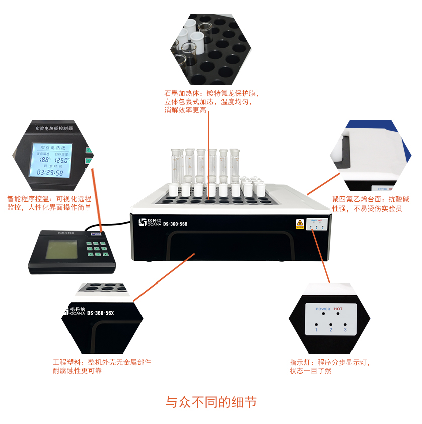 3.多孔設(shè)計(jì),批量處理樣品,快速消解,節(jié)省時(shí)間。標(biāo)配有:36、39、56、60等不同型號(hào),且支持定制。