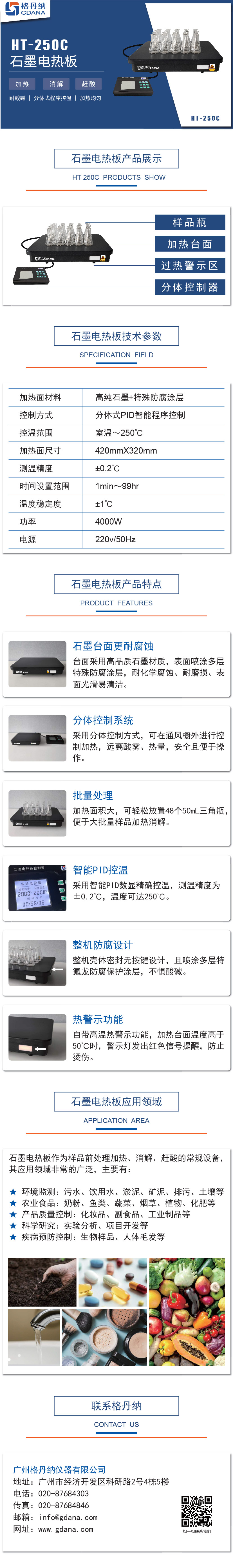 HT-250C石墨電熱板是用于化學試驗室樣品前處理中進行加熱、消煮、趕酸用的常規(guī)實驗設備。