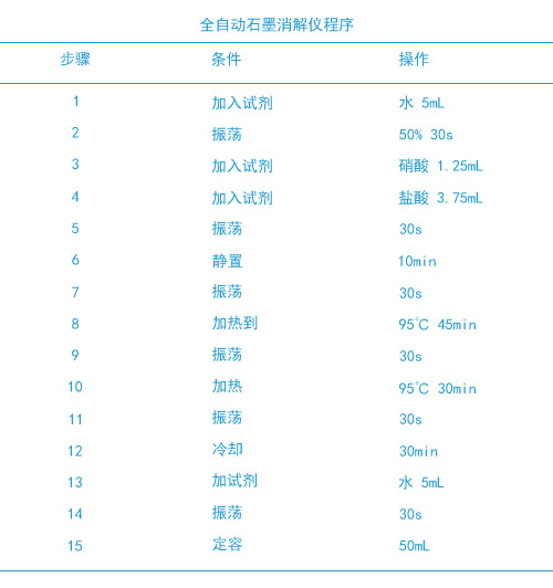 本文章采用全自動石墨消解儀作為無機樣品前處理,采用濕法消解原理,可將復雜的試驗步驟全部程序化,只需電腦上設(shè)置好一鍵啟動就可以自動加酸、搖勻、振蕩、加酸、趕酸、消解、冷卻、定容。下面根據(jù)《土壤質(zhì)量總汞、總砷、總鉛的測定原子熒光法》標準方法處理土壤樣品。