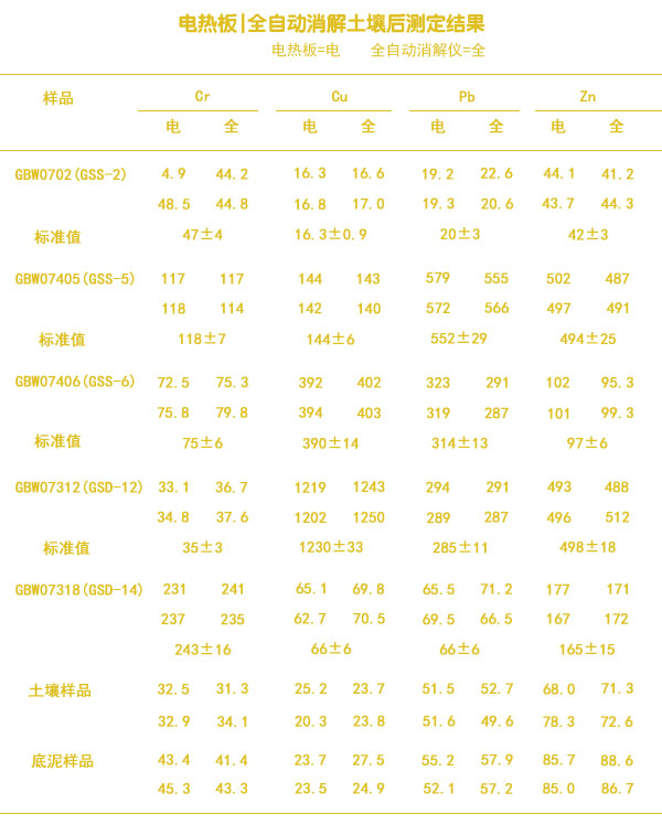 2018年7月土地標準又頒發(fā)了,《農(nóng)用地標準》、《建設用地標準》證明了,我國對土地利用越來越重視,當前比較嚴重的是土壤重金屬,重金屬富集起來對環(huán)境、人類都造成巨大的影響。文中使用陶瓷加熱板與全自動消解儀作用前處理的消解設備研究幾種酸消解體系對土壤和底泥(水沉積物)樣品消解的效果,對土壤和底泥金屬元素分析為實驗室選用不同的消解設備作參考。