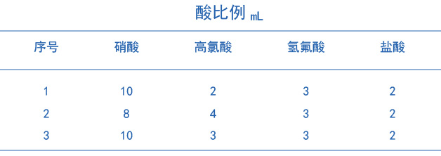 1、硝酸,高氯酸,氫氟酸,鹽酸(化學(xué)試劑均為分析純),所用溶液均用高純水配制。