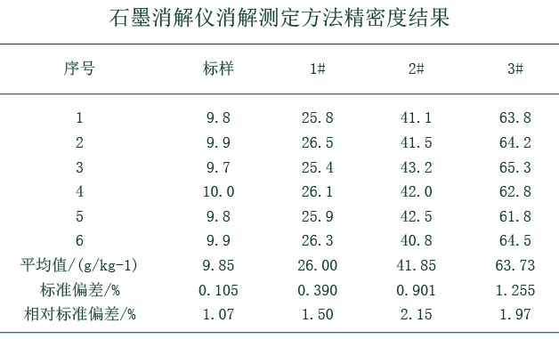 用石墨消解儀代替?zhèn)鹘y(tǒng)電爐消解法測定土壤有機(jī)質(zhì),測定結(jié)果的準(zhǔn)確度和精密度均滿足要求。與電爐方法相比不僅解決了溫度難調(diào)控、難清洗、操作繁瑣等缺點(diǎn),而且操作簡單、消解過程自動化、消解時間更短、安全等,并適合大批量土壤樣品有機(jī)質(zhì)的測定。