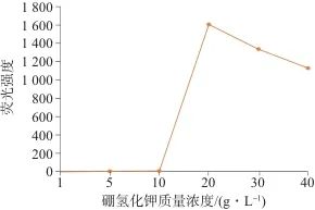 圖1 不同硼氫化鉀質(zhì)量濃度時(shí)的熒光強(qiáng)度