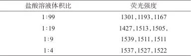 Tab. 3 Fluorescence intensity of different volume ratios of hydrochloric acid solution (n=3)