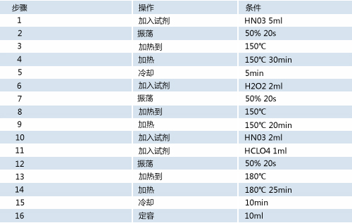 濃硝酸(MERK優(yōu)級純)、雙氧水(GR)和高氯酸(GR);銅、鎘、鉻、鋅4種重金屬元素標準溶液 (100mg/L)。