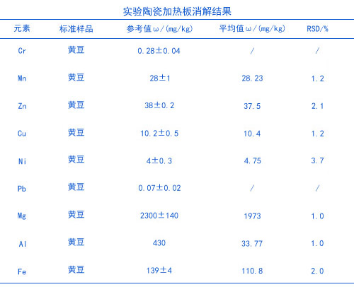 實(shí)驗(yàn)電熱板消解黃豆測(cè)定重金屬基本滿(mǎn)足要求,數(shù)據(jù)比較穩(wěn)定可靠,電熱板消解可以大批量處理分析樣品,節(jié)省了時(shí)間,實(shí)驗(yàn)室比較常規(guī)的儀器設(shè)備就可以滿(mǎn)足實(shí)驗(yàn)操作了。
