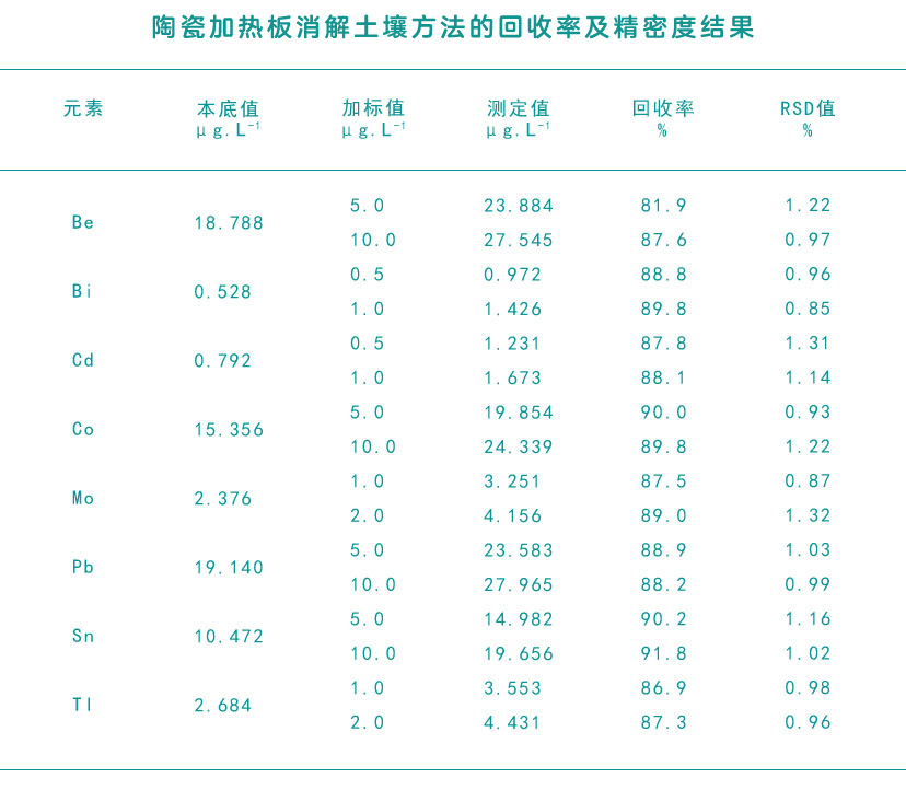 陶瓷加熱板消解土壤方法的精密度及回收率測(cè)定結(jié)果