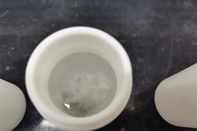 在恒溫220℃馬弗爐中消解1小時;取出冷卻后擰開蓋子,在實(shí)驗(yàn)電熱板中蒸至近干,約2mL,用5mL硝酸和少量水分清洗消解罐,出現(xiàn)白色結(jié)晶物,再加入5mL硝酸于220℃電熱板消解15min,蒸至體積小于20mL;