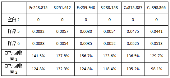 從加標(biāo)回收率數(shù)據(jù)可知,鐵和鈣的數(shù)據(jù)均在范圍內(nèi),硅的干擾較大,可能是實(shí)驗(yàn)稀釋和轉(zhuǎn)移過程中,引入了雜質(zhì),造成回收率偏高。