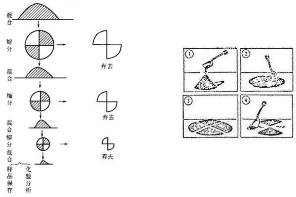 粒狀和粉狀物品(谷類和豆類)圓錐四分法取對(duì)角縮分;