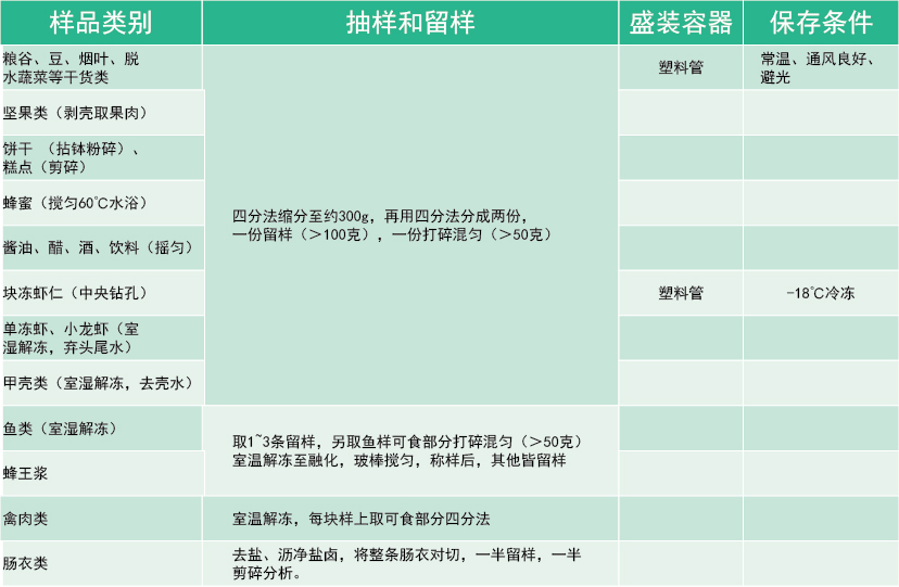 不均勻個(gè)體樣(魚和蔬菜)可以不同部位切小片段,隔一定距離取多份小塊進(jìn)行縮分;