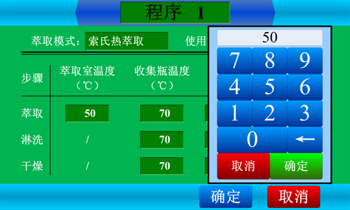 提取儀采用7寸真彩觸摸屏作為人機(jī)操作界面,所有操作通過觸控完成。
