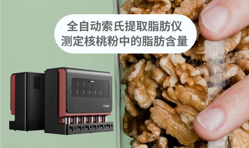 對于核桃仁,我們熟知的一種功效就是多吃能健腦益智。核桃仁里面含有一些對我們大腦有益的營養(yǎng)成分,如維生素B和E、微量元素磷脂和鋅,能夠促進(jìn)我們腦部發(fā)育的元素。核桃仁還有保護(hù)心血管、抗衰老、防便秘的功效。雖然功效多多,但核桃屬于高熱量的食物,含有的脂肪還是較多。核桃中的蛋白質(zhì),脂肪碳水化合物在進(jìn)入身體之后脂肪就會迅速堆積,易出現(xiàn)肥胖。如何測定核桃中脂肪含量,本實驗采用FT-660全自動索氏提取脂肪儀進(jìn)行測定。